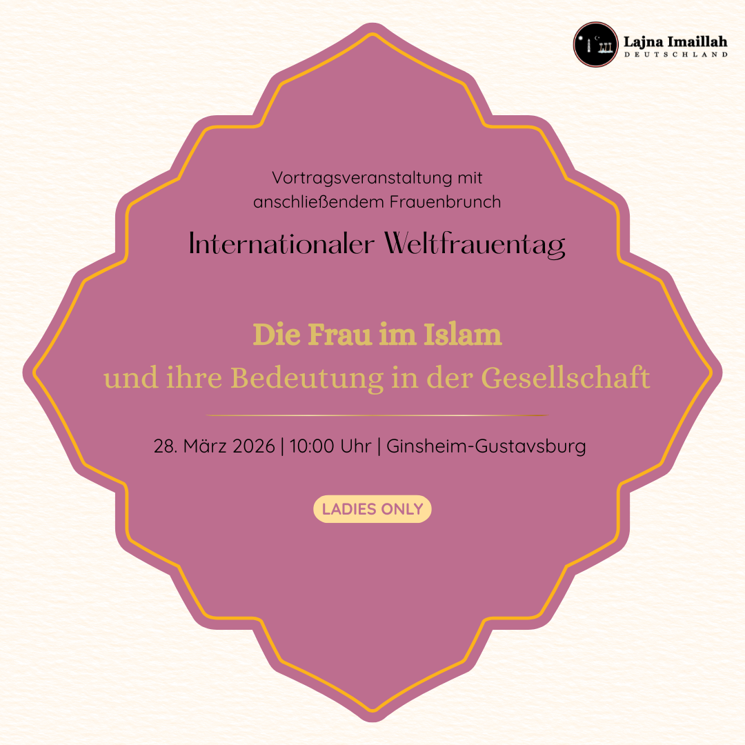 28. März, 9:00 - 11:00 Weltfrauentag 2026 Bait-ul-Ghaffar Moschee Lange Streng 13, Ginsheim-Gustavburg, Deutschland