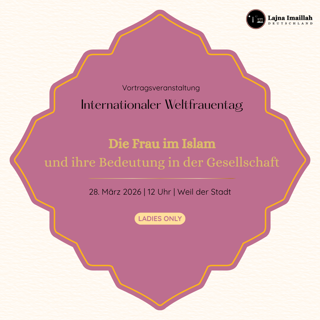 15. April, 13:30 - 15:30 Weltfrauentag 2026 Bait-ur-Raheem Moschee Matthias-Erzberger-Straße 18, Neuwied