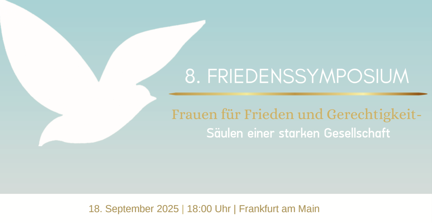 Wir, die Lajna Imaillah Deutschland, Frauenorganisation der Ahmadiyya Muslim Jamaat K.d.ö.R., sind stetig bemüht, unterschiedliche Plattformen für Dialog und Austausch zu bieten, um zusammen stark gegen Rassismus und Intoleranz zu stehen. Gemeinsam mit Ihnen möchten wir uns für Frieden und Harmonie in dieser Welt einsetzen und laden Sie deshalb herzlich zu unserem diesjährigen Friedenssymposium ein.
